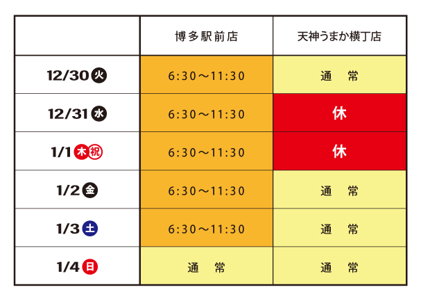 年末年始の営業時間を下記の通りご案内申し上げます。